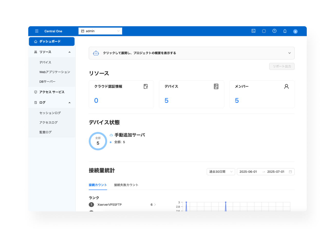 Central Oneは、サーバーやアプリなどの重要なアカウントを統合管理するアクセス管理のソリューションです。すべての操作を自動記録しながら、必要な時だけ権限を付与し制御します。大企業レベルの堅牢なセキュリティを、小規模企業でも手軽に導入いただけます。