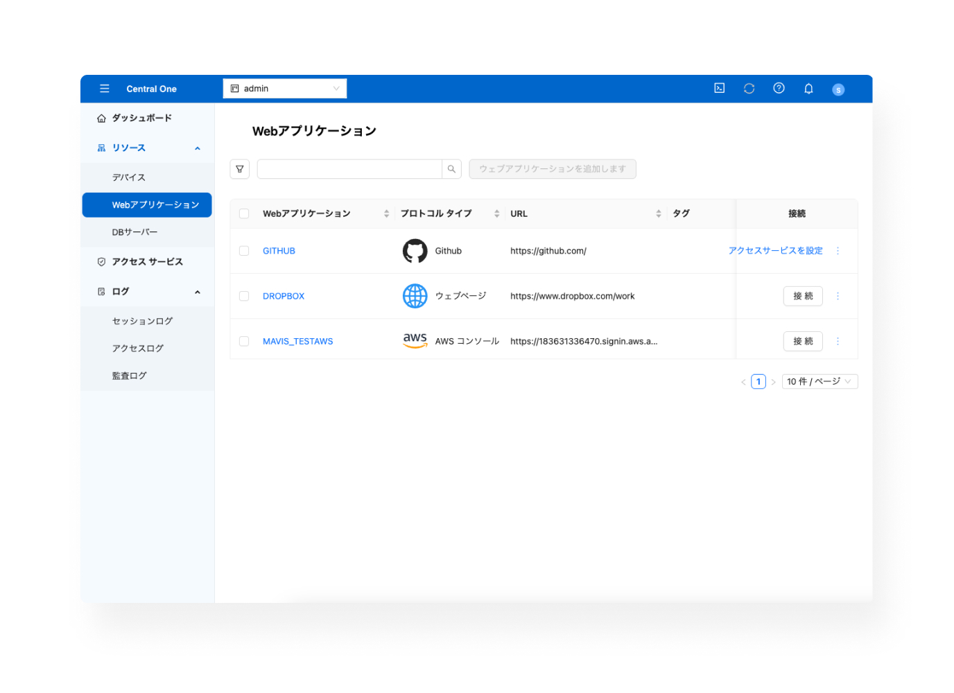 Central Oneなら、SaaSから業務系システムまでWebアプリを統合的に管理します。シングルサインオンやアクセス制御はもちろん、操作記録まで確認することが可能です。