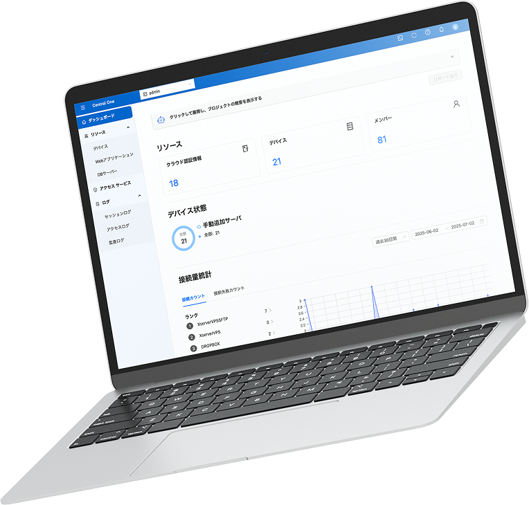 Central Oneは、サーバーやアプリなどの重要なアカウントを統合管理するアクセス管理のソリューションです。すべての操作を自動記録しながら、必要な時だけ権限を付与し制御します。大企業レベルの堅牢なセキュリティを、小規模企業でも手軽に導入いただけます。